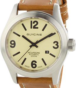 Glycine Incursore automatic 200 meters water resistant watch powered by ETA 2824-2 automatic movement. Large 46mm stainless steel case, sapphire crystal. Cream dial. Tan color leather watch band.