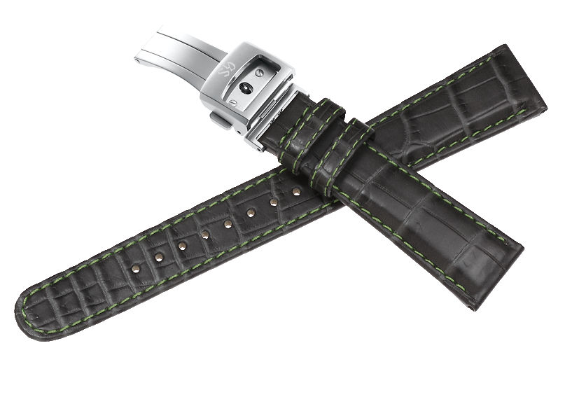 Deployant style, with spring release. Factory Logo engraved/embossed.
