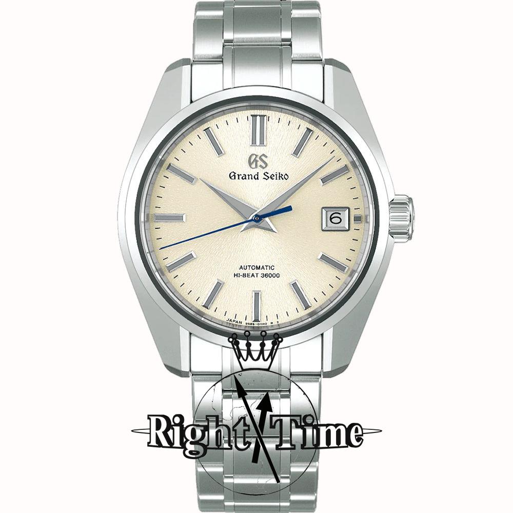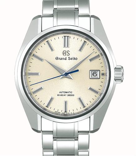 Grand Seiko Hi-Beat 36,000 Automatic watch from Grand Seiko Heritage Collection model SBGH299. The case and bracelet are made of Ever-Brilliant Steel. Ivory textured dial with date and silver tone index markers. Sapphire crystal on front and back.