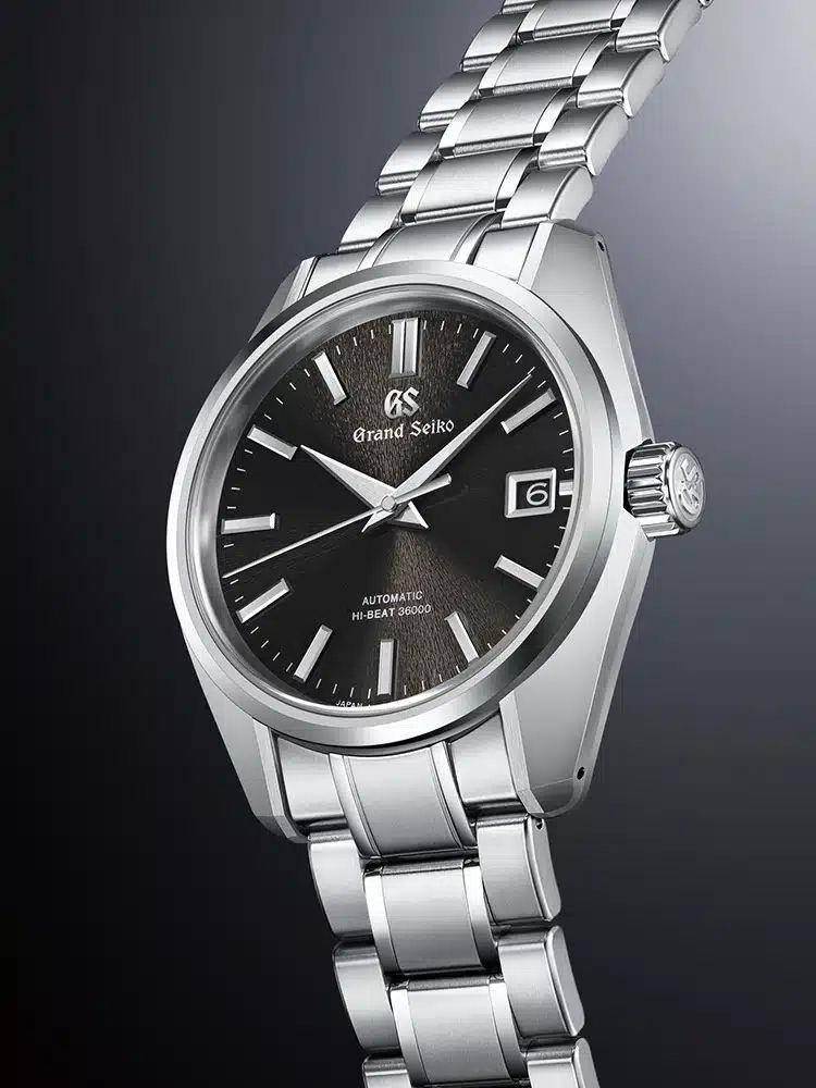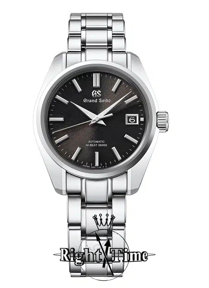 Grand Seiko Hi-Beat 36,000 Automatic watch from Grand Seiko Heritage Collection model SBGH301. The case and bracelet are made of Ever-Brilliant Steel. Black textured dial with date and silver tone index markers. Sapphire crystal on front and back.