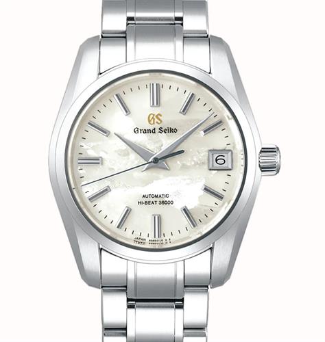 Grand Seiko Hi-Beat 36,000 Automatic watch from Grand Seiko Collection model SBGH311 commemorates the 25th anniversary of the first Caliber 9S while also honoring the distinct beauty of Shizukuishi. "Sea of clouds that cover Mt. Iwate at daybreak" dial with date and silver tone index markers. Steel case with bracelet. Sapphire crystal on front and back.