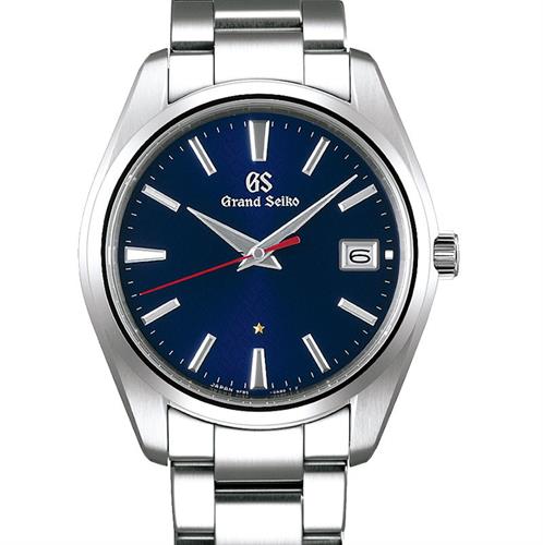 Grand Seiko 60th Anniversary Limited Editions quartz watch. Model SBGP007. Each quartz oscillator is specially selected to allow the achievement of an annual accuracy of ±5 seconds. The dial features a 5-pointed star as a symbol of this high level of accuracy and date calendar. Limited Edition of 2500 pieces. Comes in a stainless steel case with bracelet and blue dial.