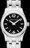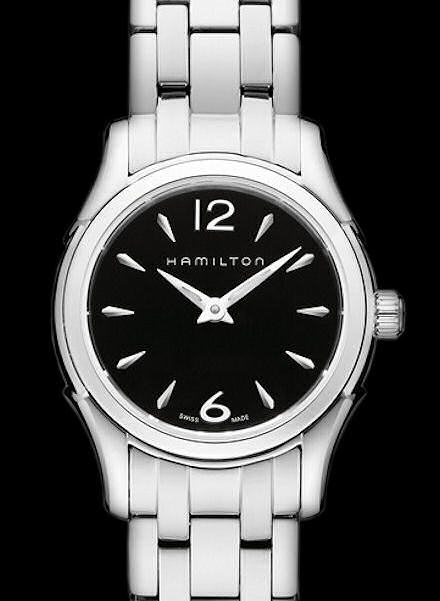 Lady quartz watch in 27mm stainless steel case from Hamilton Jazzmaster Collection. Black dial. Stainless steel bracelet.