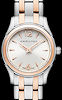 Lady quartz watch in 27mm stainless steel case with rose gold accents from Hamilton Jazzmaster Collection. White dial. Stainless steel bracelet with rose gold accents.