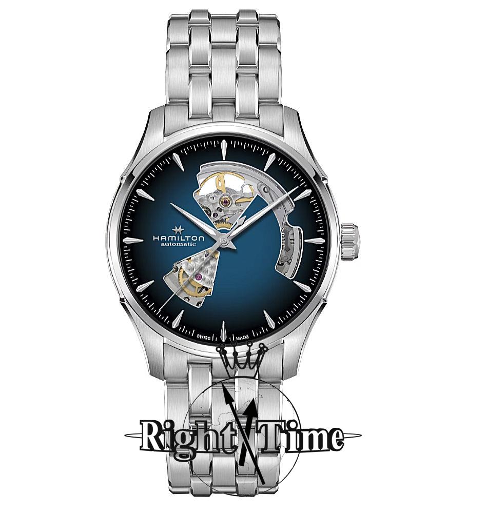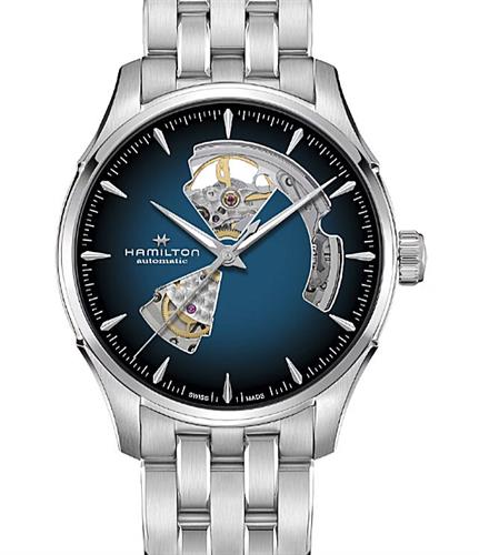 Hamilton JazzMaster "Open Heart" automatic watch model H32675140 with blue color dial, powered automatic movement, on bracelet