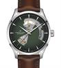 Hamilton JazzMaster "Open Heart" automatic watch model H32675560 with green color dial, powered automatic movement, on brown leather band
