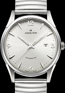 Hamilton Thin-O-Matic Automatic watch model H38715281. Stainless steel case and bracelet, silver color dial with date calendar.