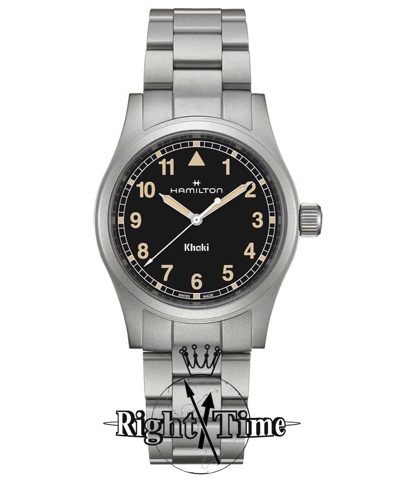 Hamilton Khaki Field Quartz model H69401131. Sandblasted 38mm stainless steel case and bracelet with a domed sapphire crystal. Black dial with Arabic numerals and luminous hands/markers. Water resistant to 50 meters.