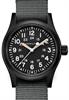 Hamilton Khaki Field model H69409930. Swiss made Hamilton H-50 manual-wind movement, with up to 80 hour power reserve. Stainless steel case with black PVD coating. Black field dial with Arabic numerals and luminous markers/hands. Ships on a black/grey Nato style nylon strap.