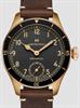 Hamilton Khaki Aviation Pilot Pioneer model H76709530. Swiss made ETA ETA 6498-1 manual-wind movement with small seconds platform and 50 hour power reserve. Genuine bronze 43mm case with duo-directional bezel. Black dial with Arabic numerals. Brown color genuine leather strap.