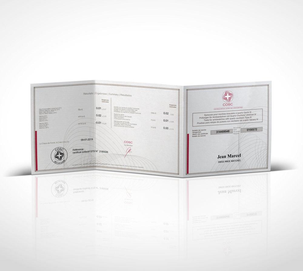 Sapphire. Anti-Glare treated. Mystery Effect – invisible JM emblem on the crystal becomes visible when breathed on.