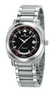 Jean Marcel automatic all Swiss made wrist watch from Jean Marcel Atlas Collection. Swiss ETA 2834 Automatic movement with day/date calendar on black color dial with red 0-60 numerals, luminous hands and markers. Over-sized satin finished stainless steel case with polished bezel, exhibition case back and stainless steel watch bracelet.