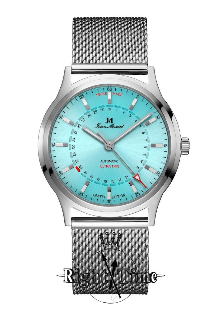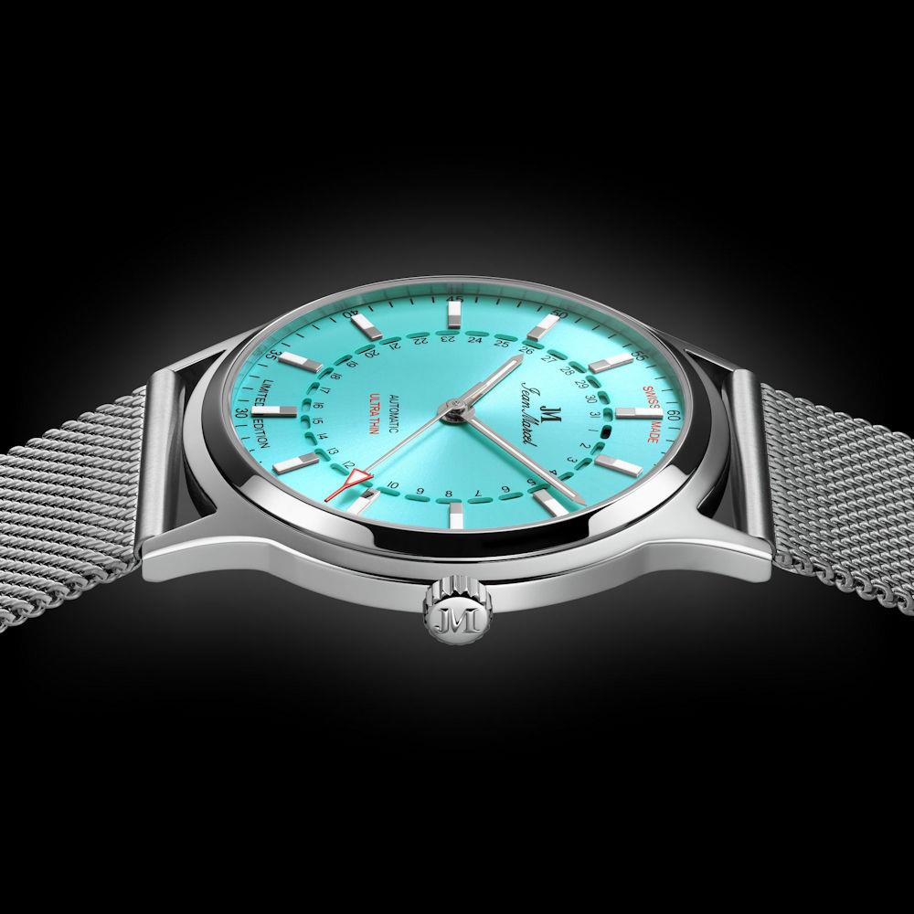 Jean Marcel Automatik watch Stealth Model 540.60.82.86. Limited Edition of 100 pieces. Stainless steel case. Turquoise blue dial with date pointer hand. Stainless steel mesh bracelet. Water resistant to 50 meters