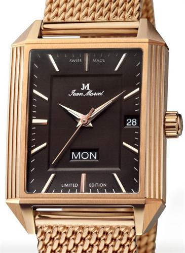 Jean Marcel QuadrumII watch model 570.265.72. Limited Edition of 300 pieces. Powered by ETA based 2836 automatic movement. Stainless steel rectangular rose gold plated case with observation back. Black dial with day/date calendar. Non-reflective sapphire crystal. Stainless steel gold plated mesh bracelet. Water resistant to 50 meters