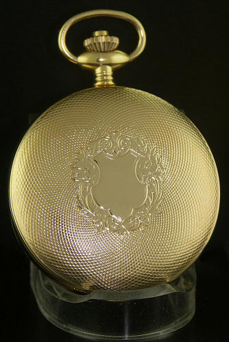 Jean Marcel Swiss Mechanical pocket watch with Swiss Manually wound ETA/UNITAS Cal. 6497/8 , fully skeletonized movement with Cotes de Geneve hand enhancements. Gold plated case with "engine turned" decorated finish double cover.