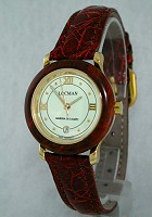 Locman Marina DI Campo Lady watch powered by Swiss quartz movement. Stainless steel gold plated case with Erica brier wood bezel. Ivory color dial with date calendar. Brown Crocodile leather watch strap.
