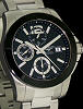 Date calendar, window display. 12 hr, 30 min, 60 sec registers chronograph.