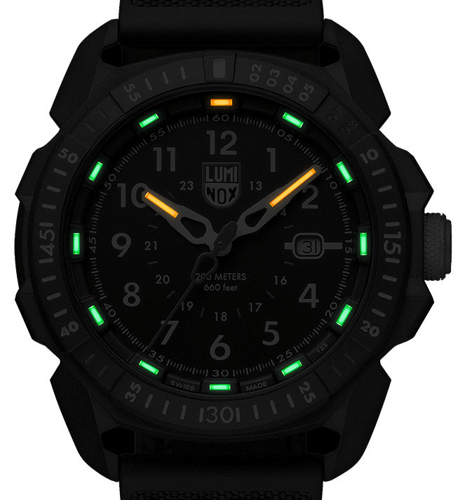 Luminox ultra-durable and lightweight Carbonox material. Black color.