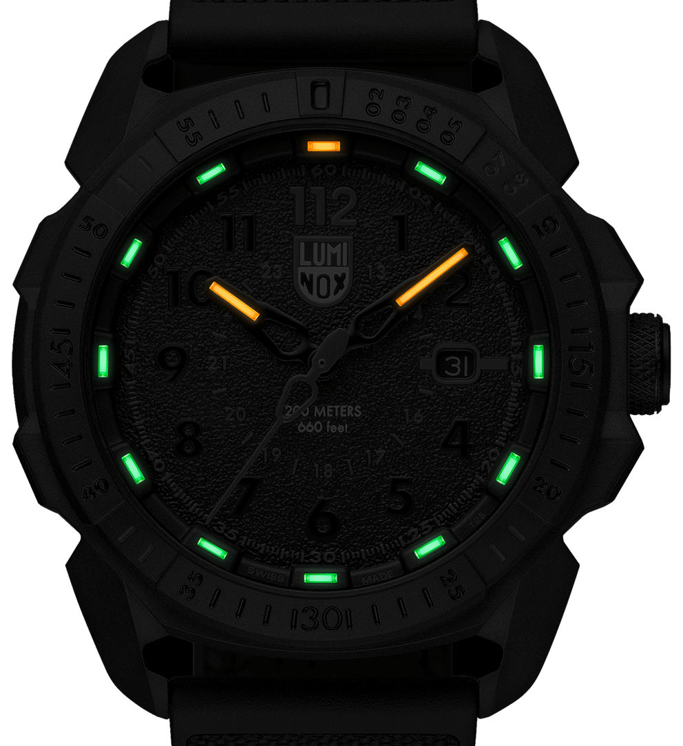 Luminox ultra-durable and lightweight Carbonox material. Black color.