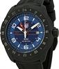 Luminox Land SXC PC GMT 5020 SPACE SERIES. Swiss quartz movement with date calendar and second time zone yellow pointer. Black carbon reinforced PCB case with black rubber strap. 200 meters water resistant. Blue dial with micro gas lights on hour markers and hands.
