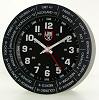 Luminox World Alarm Clock LWAC. Steel black plated case with printed World Cities and their GMT time zone. Black dial with micro gas lights at hands and hour markers.