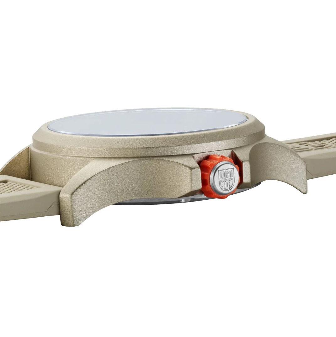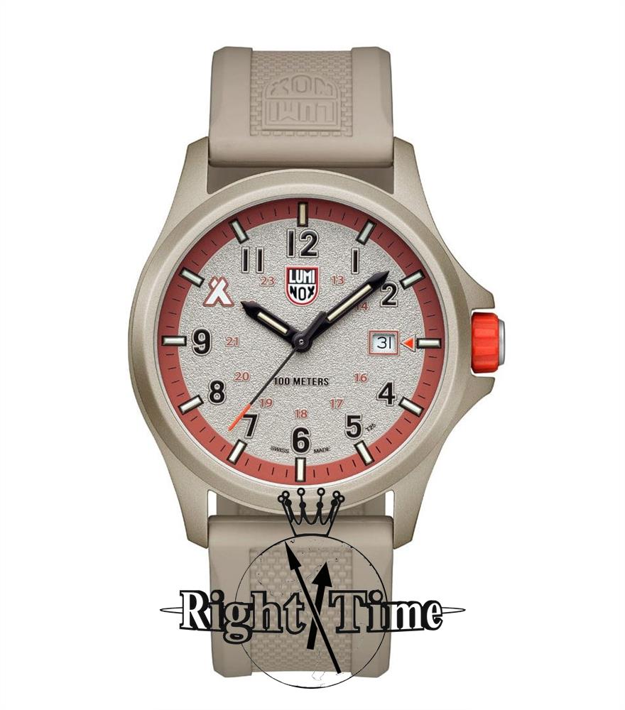 Luminox Bear Grylls Survival Land 3710 Series watch model XB.3717. Crafted for long expeditions and inspired by survival legend Bear Grylls. 43mm case is made of ultra-lightweight ALUMI-NOX, an aerospace-grade aluminum. Powered by Swiss quartz movement with date. Sand colored and textured dial with Arabic numerals. Sand color rubber band.