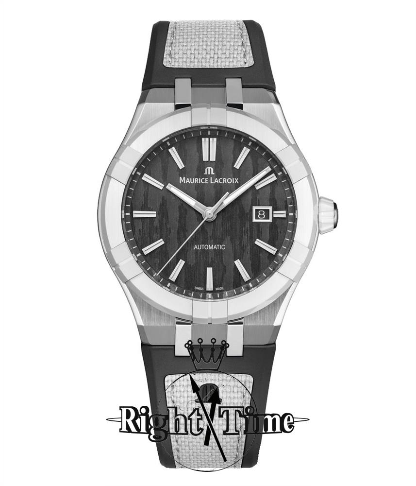 Maurice Lacroix Aikon Gents watch model AC6008-SSL70-330-2. Swiss automatic movement. Black carbon dial with luminous hands, and date calendar. Stainless steel case with white ceramic bezel, sapphire crystal and black/white rubber strap.