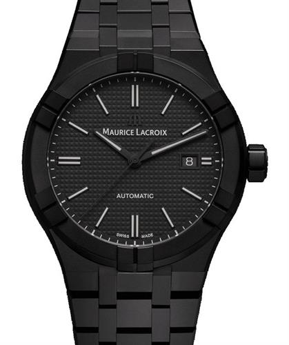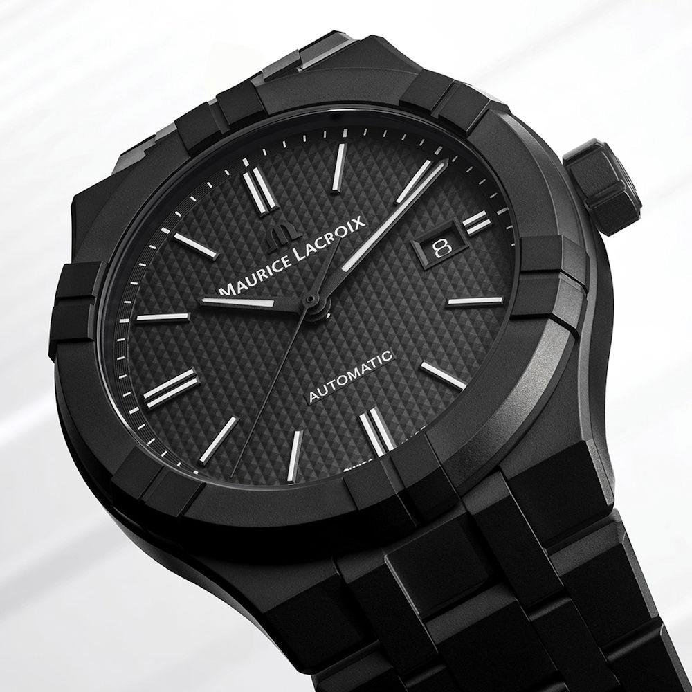 Maurice Lacroix Aikon watch model AI6008-CRM22-330-2. Swiss automatic movement. Black textured dial with luminous hands, and date calendar. Black ceramic case with sapphire crystal and black ceramic bracelet. Water resistant to 200 meters. Limited edition