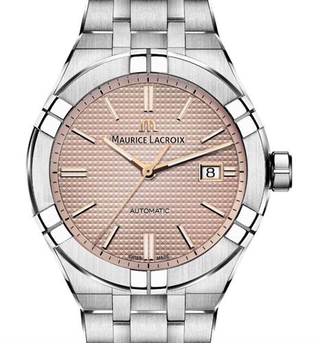 Maurice Lacroix Aikon Gents watch model AI6008-SS002-730-1. Swiss automatic movement. Champagne textured dial with luminous hands, and date calendar. Stainless steel case with sapphire crystal and bracelet. Water resistant to 100 meters.