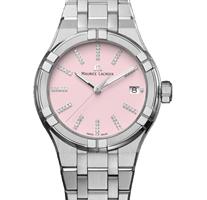 Maurice Lacroix Aikon Ladies watch model AI6006-SS00F-550-E. Swiss made automatic movement with date function. Pink dial with genuine diamond markers. Solid stainless steel case and bracelet. Sapphire crystal. Water resistant to 200 meters.