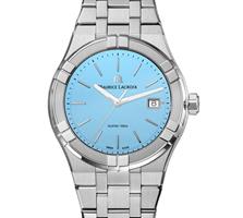Maurice Lacroix Aikon Colours Edition model AI1108-SS002-431-1. Stainless steel case and bracelet. Blue dial with date calendar. Swiss made quartz analog movement. Sapphire crystal. Water resistant to 100 meters.