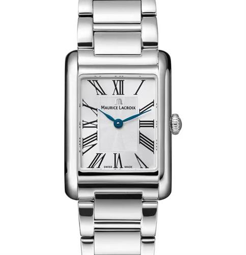 Maurice Lacroix Fiaba - slim and feminine, fashionable and contemporary with a touch of classic. Ergonomically designed rectangular shaped stainless steel case with sapphire crystal. Swiss ETA quartz movement. Silver color textured dial with Roman numerals. Stainless steel bracelet.