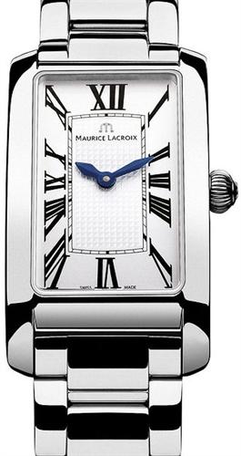 Maurice Lacroix Fiaba - slim and feminine, fashionable and contemporary with a touch of classic. Ergonomically designed rectangular shaped stainless steel case with sapphire crystal. Swiss ETA quartz movement. Silver color textured dial with Roman numerals. Stainless steel bracelet.
