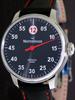 MeisterSinger "Salthora Meta Black" single hand automatic Jump Hour function with black dial red minute hand and black strap with matching red stitch, powered by factory modified SW200-2 movement inside 43mm satin/polished stainless steel case