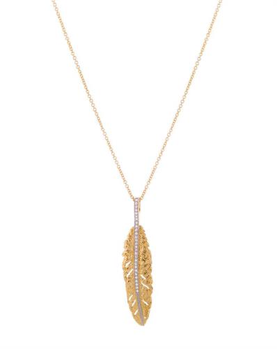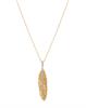 Michael Aram 52mm Feather Pendant Necklace with diamonds. Made of 5.89g of 18K yellow gold with 0.14ct white diamonds. 24" long. 28mm Clasp