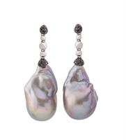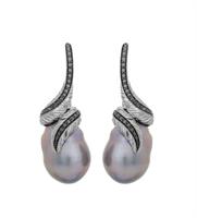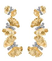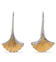 Michael Aram Ginkgo Leaf Drop Earrings with diamonds. Made of sterling silver and 18K yellow gold (2.33g ) with 0.09ct white diamonds. 33mm