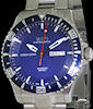 Mido Ocean Star Sport watch. Stainless steel case with one-way rotating bezel. Swiss automatic movement with day/date. Blue guilloche dial with luminous hands and markers. Stainless steel bracelet. Water resistant to 200 meters
