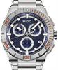 Date calendar, window display. 30 min, 60 sec, 1/10 sec registers chronograph.
