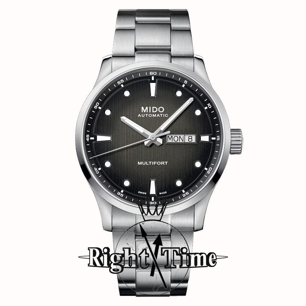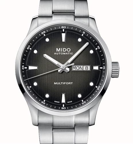 Mido Multifort M collection, factory model M038.430.11.051.00. Mido Swiss made Caliber 80 Automatic movement. Stainless steel case. Black dial with luminous markers. Metal bracelet