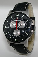 30 min, 60 sec, 1/10 sec registers chronograph. Date calendar, window display.