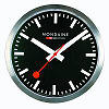 Quartz movement, matte aluminum case, black dial with white hands and indexes.