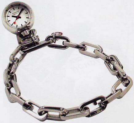 Mondaine "Lucky Charm" ladies pendant watch model A666.30333.11SBB from Mondaine Evo Collection. Swiss quartz movement, polished stainless steel case. Official Swiss Railway Watch Design, white dial with black indexes. Comes with chain bracelet and rubber cord.