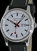 Mondaine 41mm case size Official Swiss Railway A669.30308.16SBB wristwatch, with satin finish stainless steel case, white dial, large date display and domed crystal, tritium gas filled tubes for night vision