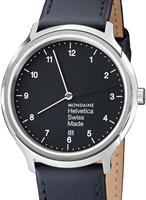 Mondaine Helvetica No1 Smartwatch model MH1.B2S80.LB powered by quartz movement. Limited Edition of 1957 pieces. Stainless steel case with black color leather strap and sapphire crystal over grey dial. Day calendar pointer hand