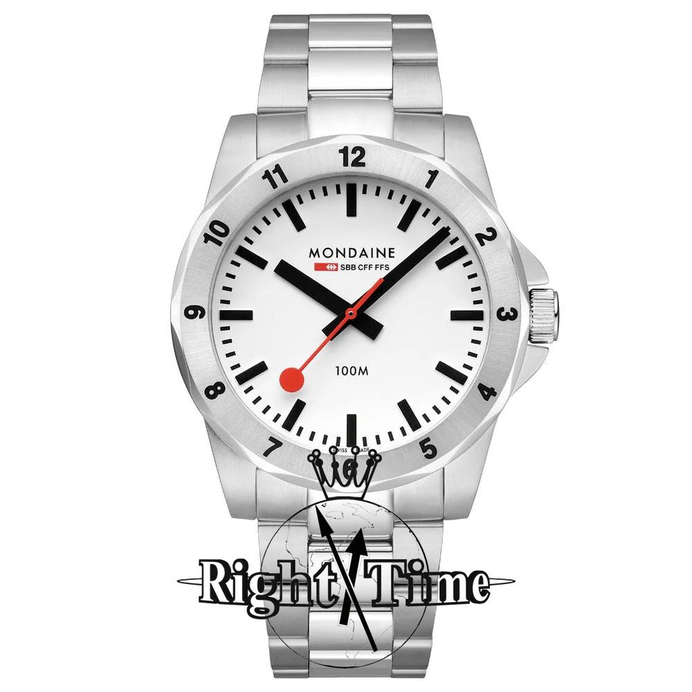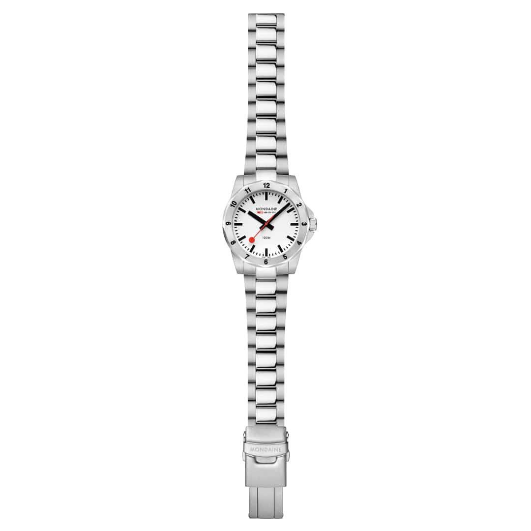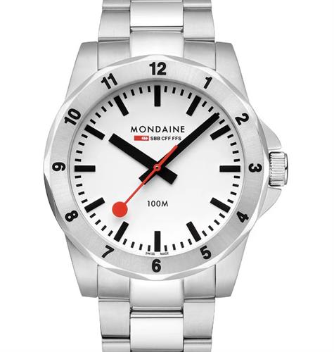Mondaine Numeri wrist watch model MSN.4211B.SK in stainless-steel case. White dial with black markers. Comes on a steel bracelet