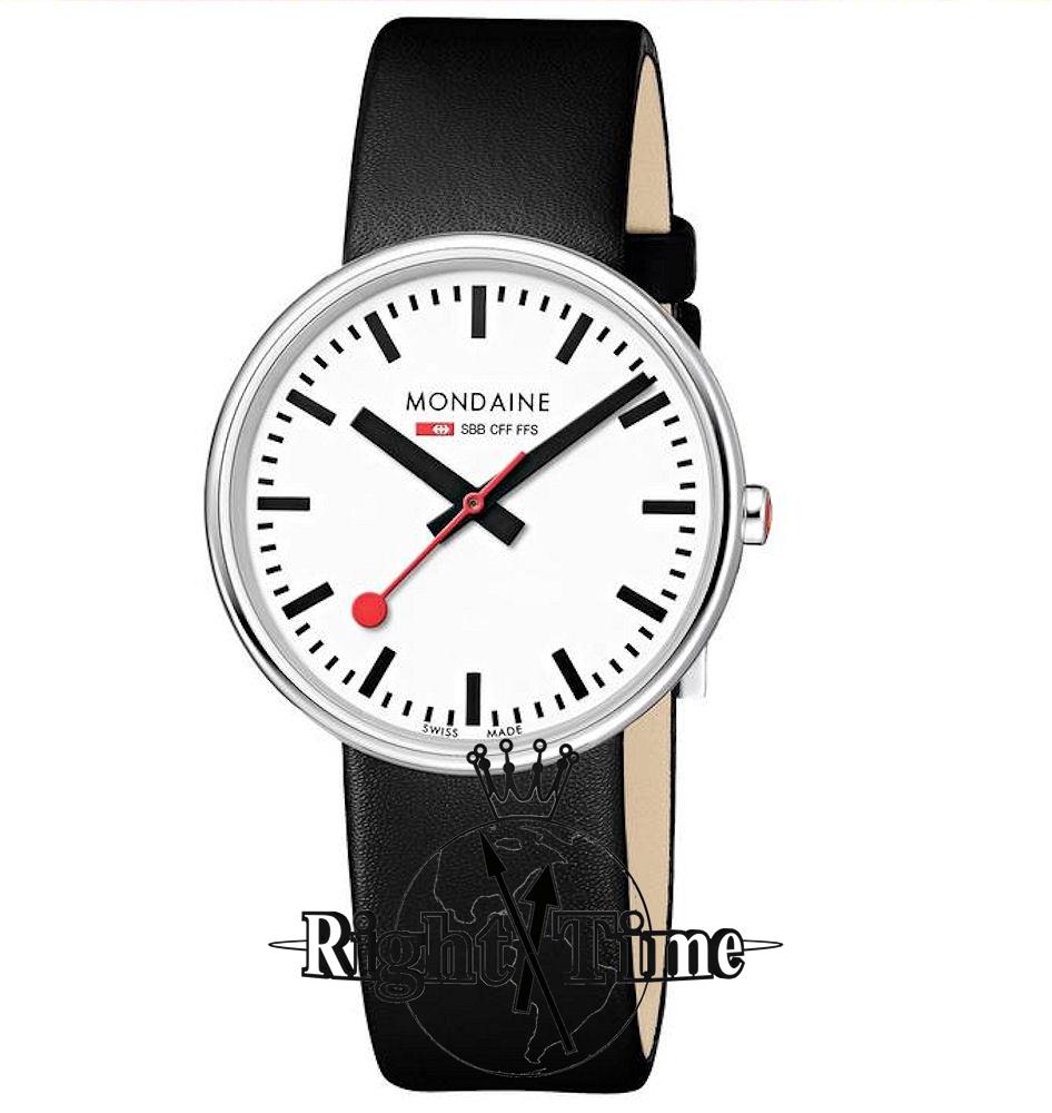 Mondaine Mini Giant BackLight wrist watch model MSX.3511B.LB. Polished stainless steel case. White dial with classic black markers and innovative BackLight technology. Comes with a black leather strap