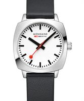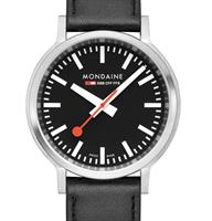 Mondaine Giant BackLight wrist watch model MSX.4211B.LB. 42mm polished stainless steel case. White dial with classic black markers and innovative BackLight technology. Comes with a black leather strap