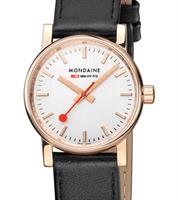 Ladies 30mm Mondaine wrist "EVO 2" model MSE.30110.LB in stainless steel case. White dial with black markers. Comes with a black leather watch band.