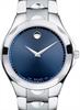 Movado Luno watch model 0606380. Swiss quartz movement. Stainless steel case and bracelet. Blue Movado Museum dial.
