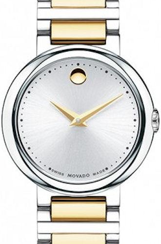 Movado Concerto watch for ladies model 0606703. Swiss quartz movement. Stainless steel case and bracelet with gold plated accents. Silver color Movado Museum dial.